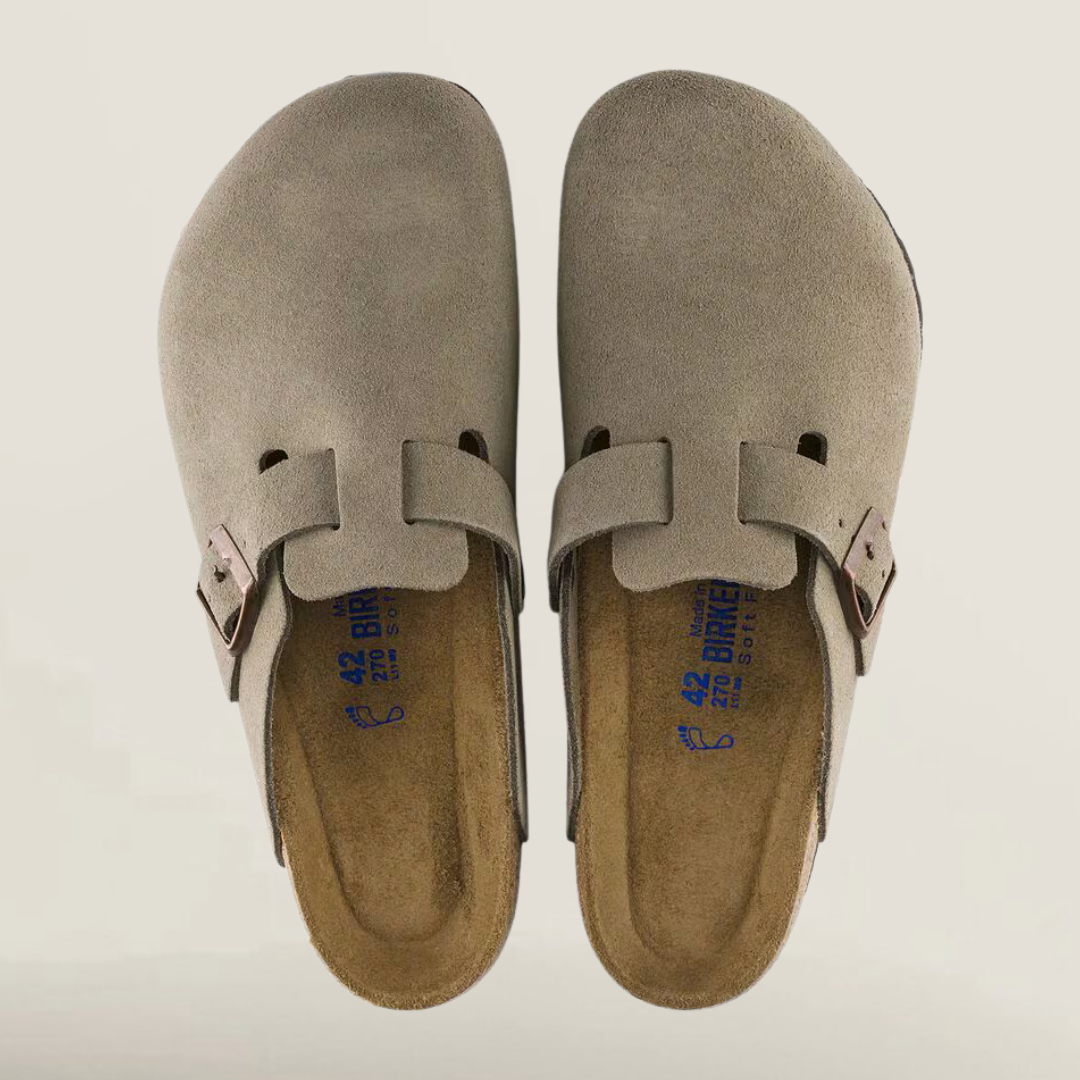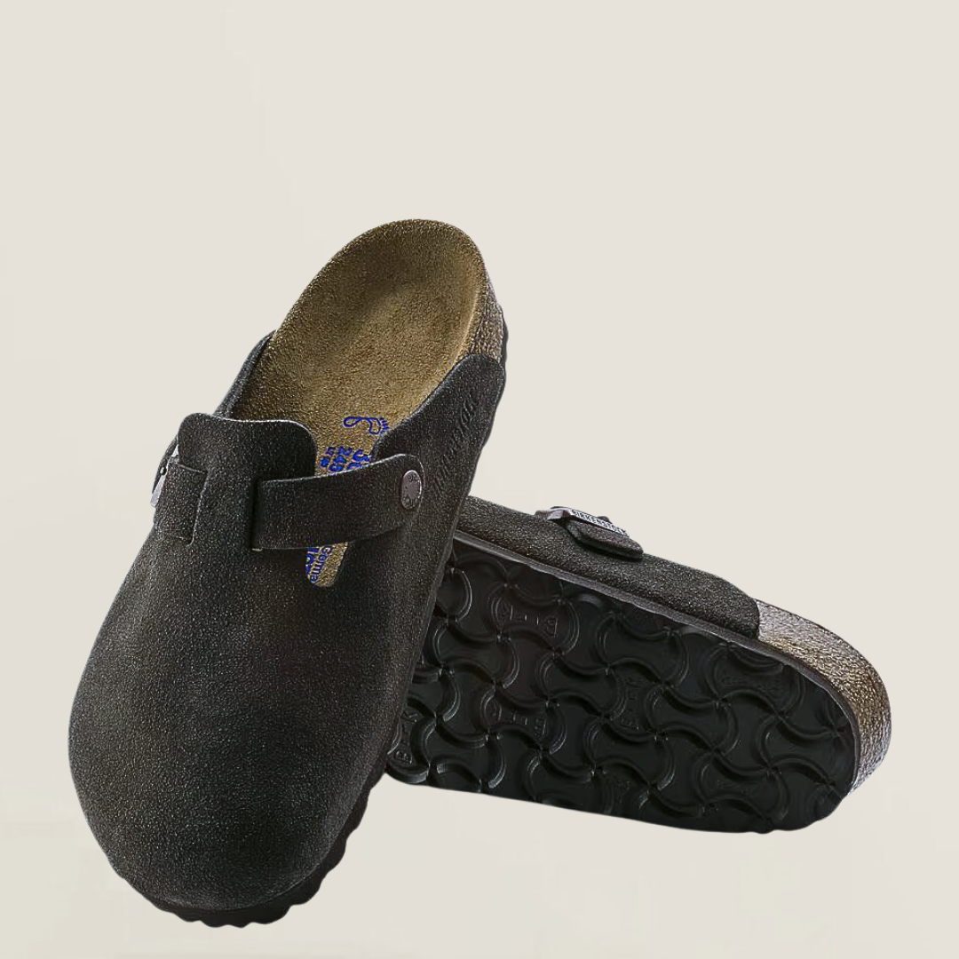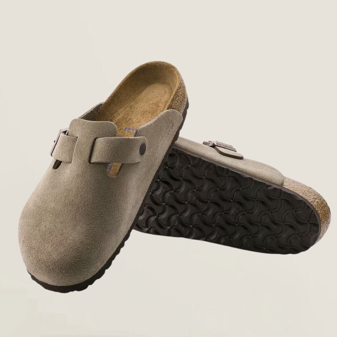 Dieser klassische Clog vereint minimalistisches Design mit maximalem Tragekomfort. Das anatomisch geformte Kork-Latex-Fußbett passt sich deinem Fuß perfekt an und sorgt für ein angenehmes Laufgefühl – den ganzen Tag. Ob zu Hause oder unterwegs: Der stilvolle Slip-on aus hochwertigem Veloursleder ist ein echtes Allround-Talent für jede Jahreszeit.